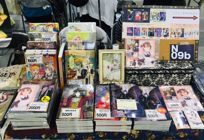 COMITIA129 イベントレポ イベントレポ 2019年08月25日 0 桃ノ木です、COMITIA129お疲れ様でした!お越しくださった方々、ありがとうございました!まず無事に終えられて非常にほっとしています。今年は夏の初めに熱中症で倒れてから、本当に暑さに弱くなってしまってイベントの暑さに耐えられるのかずっと不安だったのでなんとか終えられて安心しました。Twitterの方でも呟きましたが、対策アイテムを大量に導入し食べる物は水系ペットボトル×2本、スポドリ×1本、OS1×2本、めんつゆストレート×1本アイスボックス×1個、ゼリー状OS1×1個、塩タブレット×1袋、おせんべい×1袋これらを保冷剤と共にクーラーボックスに入れ他にも冷却アイテムとして首掛けハンディ扇風機、アイスノン、冷えピタ、濡れると冷たいバンダナ、団扇を装備。服装は普段以上に露出部の多いタンプトップ&短パン、踝靴下という個人的に、これでもか!という装備で臨みました。二週間ぐらい前から半身浴で汗腺を鍛えたし!朝にシャワーを浴びてクールダウンしたし!戦う気十分!なので正直、食品は色々残るだろうなとも。結果、なんとかギリギリ持ちこたえたものの、2時過ぎに離脱し帰宅する頃にはドリンク残、めんつゆのみ。お茶追加1本購入食品残、タブレット一部、おせんべい袋。(差し入れの塩レモンゼリーはありがたく消化)塩分過多すぎない???と思いつつ、命綱のOS1が水だなあ…というレベルになっていたので体内の塩分は確かにどこかに消えたようです(汗)2時過ぎになって、私は上記装備でなんとか耐えつつ体力の限界を感じていた頃売り子さんの方が体調不良になってしまったのでこれはもう駄目だと早めに撤収しました。夏…辛い…ただ買い物に出たりなど歩いている分には風を感じて涼しくそこまで暑さを感じる事はなかったです。スペースでじっとしている方が、どんどん熱が篭っていく感じでした。個人的MVPはハンディ扇風機!!これが本当によかった!幸い風があれば涼しさを感じる気温でしたので頭にがんがん風を送れる扇風機は本当に楽でした。それでも当たらない部位はやはり熱くなってしまうのですが頭を長時間冷やせたので、ぐっと滞在時間が伸ばせたなという印象です。これからまだイベント参加がある方などは是非、ミニ扇風機を! 朝、東京テレポート到着から、サークル入場までしばらく時間があったので近くのバーミヤンで朝食を取りました。本当に塩分はどこへいってしまったのでしょう…。今回も会場の使い勝手はどうですか?という話題をある方とお話しましたが青海展示場はビックサイトのようにホール外で待つ場所がないので来場時間を調節しないと夏場のサークルは辛そうです…。でも不測の事態などもあり得るので、なるべく早めには着きたいのですが。 さて、今回も割と混沌としている机の上。というか巡回を待っている間に撮影したので、うっかり見本誌が変な位置にあります…。今回はヴァンメイ、ブラックバーン家などメイドシリーズは棚に入り新刊含む吸血鬼シリーズを平積みにして推しています。準新作のヴァンメイお屋敷変再録のみ、これも手前に。原画の新作も一枚置きました。在庫状況としてはブラックバーン家のバレンタイン編の手持ちが完売。書店委託からいつ呼び戻そうかな、といった感じ他ヴァンメイ789再録の続き、10巻が残り僅かになりました。再録からあぶれた一冊で、大事な完結編ですが一冊では中途半端なので再録?再販するかは未定です。棚2個がいっぱいになってしまったのでそろそろ古い作品の「紳士の玉子〜」は終売かなあとも考え始めました。机の上に余裕ができるまでお留守番という手もありますが…。新刊の「悪魔と間違えられた吸血鬼」は今回もメロンブックスさんに委託しますのでイベントには参加しなかったけれど気になっているという方はそちらでお求め下されば幸いです。 ありがたい差し入れたち。今回は開始直後に買い物へ出た為にお会いできなかった方は申し訳ありませんでした!この場でお礼申し上げます!本当に度々気にかけていただき感謝しかありません。(この場に無いものは帰宅前に食べてしまいました)そして心のこもったお手紙も本当に嬉しいです!自分のやっている事は間違いではないのだと、そんな気持ちになります。もちろん「趣味で漫画を描く」ということは「間違い」に直結するような悪い事ではないしきっと心の赴くうちは一人でもせっせと描き続けるとは思うのですが度々不安になるし、するとそこに意味なんてものを考え始めるし無駄だとか無駄じゃ無いとか、正直イベントが終わって充実感に満ちている今なら何言ってんだい、楽しくやろうぜ!ぐらいの詮無い問いを時にぐるぐると煮詰め始めるので、そんな時にいただいた言葉は本当に支えになります。なんだかポエミーになってきたので締めますが感想や励ましはとっても嬉しいです!ありがとうございます!次回は11月のコミティア130に申し込み予定です。周りの方も次