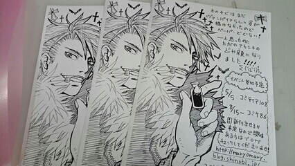 コミティア107お待ちしてます~ お知らせ 2014年02月01日 0 どうも、こんにちは。前前日にイベントの荷物をウキウキパッキングしちゃう南です。 ↓新刊情報↓【ヴァンパイアドール】ある夜、何者かに屋敷を燃やされ一族の中唯一生き残ったお嬢様メアリー。行き場のない彼女は同じく生き残った執事の親族の屋敷へやっかいになる事に。その屋敷の住人男4人と執事1人とメアリー6人の新しい物語のはじまりー・・・そんな新刊も無事届き、ペーパーも準備したし、新しい布もカットしたしあとは当日寝坊しないようにがんばるだけです!ヾ(・ω・)ノ でも朝早いんだよなー・・・家遠いんだよねー・・・あ、今回はペーパーがあります!机上に置いておくので購入の有無に関わらずご自由にお持ちください。きっと反対側に桃ノ木のペーパーもあるので、セットでお持ち帰りして頂けたら嬉しいです(*´ω`*)本お買い上げ頂いた方にはポストカードと一緒に中に挟ませてもらいます。そうそう、VDの表紙が赤なのは、前回の闇喰いをおばぁちゃんに見せたら表紙が寒そうだと言われたので、助言通り赤になったのはちょっとした小話です。毎回イベントが楽しみ過ぎて夜眠れなくて1時間睡眠とかばかりです。今回は眠れるかなー。あと、スペースに設置してあるA4の新刊ポスター、もし欲しい方いましたらお声がけください。イベント終わったら捨てるだけなので!当日は桃ノ木共々スペースでのほほんと過ごしてるつもりなので、お近くお通りのさいは寄っていってくださいませ~。ヾ(。・ω・。) へ[0回]PR