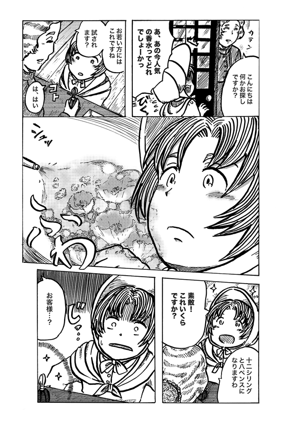 無題 作家:桃の木 2014年04月18日 0 桃ノ木です。イベント前の短編アップしました。 pixivにも上げたのでこちらにも。例のごとく(?)短編を描きましたー香水は高級品ということで、英国王室御用達ペンハリガンをモデルにしました……といっても1860年に理髪店としてオープンした店がそう何年で香水店になる筈も無いので、時代設定無視ですね。残念ながら大凡の場合、現代の資料に頼っているので店構えやら何やら多分間違っています。場所は高級店連なる(らしい)バーリントン・アーケード!なんだか憧れますね、買い物してみたい!しかし香水って貧乏人故か、つける機会はない、種類が多すぎてよくわからないであまり買った事はないんですよね。いくつもサンプルを嗅ぐとすぐに鼻がバカになってわからなくなるし。いつか、嫌みにならない程度で香水デビューしてみたいです。 へ[0回]PR
