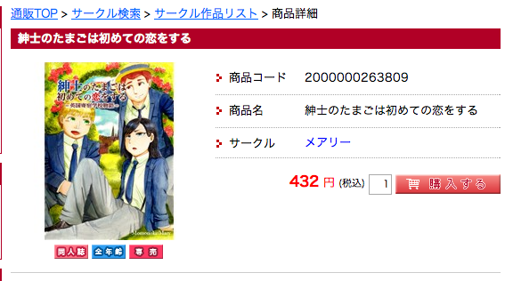 COMITIA114新刊・書店委託はじまりました! お知らせ 2015年11月20日 0 桃ノ木ですCOMITIA114新刊「紳士のたまごは初めての恋をする」がCOMIC ZIN様にて通販開始されました!http://shop.comiczin.jp/products/detail.php?product_id=26380以前同様、自家通販でもお取り扱いしますが書店様の方が対応速度、梱包等で安心かと。イベント価格よりも若干高くなってしまいますが、ご興味のある方がいらっしゃいましたらよろしくお願いします♪初めての書店委託販売でドキドキです// へ[0回]