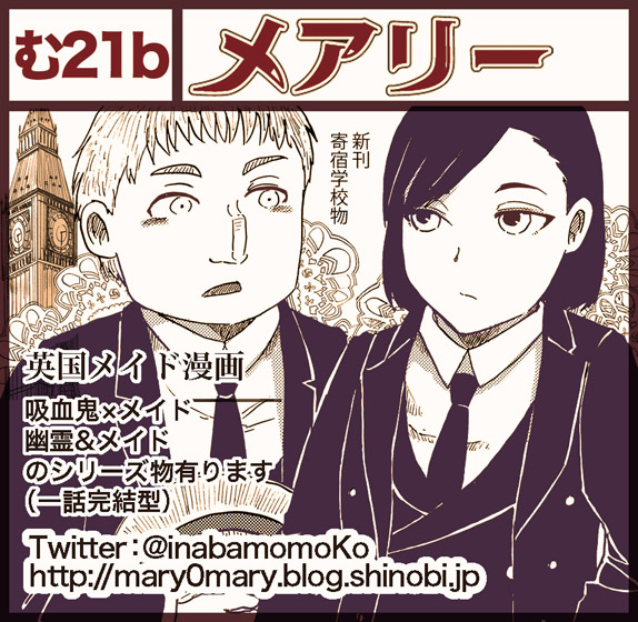 COMITIA114参加します! お知らせ 2015年10月16日 0 桃ノ木です久しぶりのブログ更新となってしまいましたーしばらく微妙な風邪を拗らせて、どうにも帰宅後に何もできずにおりました昨日まではまだ頭が重かったのですが、今日は随分良くなったように思います♪で、本題ですがCOMITIA114のスペースが取れました!今回応募者多数によりコミティア四年振りの抽選となったのですが、なんとか参加が叶うようです!お知り合いのサークルさん達も当選されたようで、参加はもちろんお買い物も今からとても楽しみですねー//スペースはサークル「メアリー」む21bとなっております!相変わらずホールの端っこの方です新刊は以前からちょくちょく進捗をお知らせしている、パブリックスクール少年物です!お話の立ち位置としては、ヴァンメイシリーズに登場するキリングのオッサンの昔話です。彼視点のお話となるので……まあ、本編をご存知な方はおわかりでしょうが強制的にBLになります!!(ちゃんとボーイズなのでBLという単語が使える)別にイチャイチャするようなシーンもカップルもいないのですが…全力で男の子が男の子に恋をするお話なので、今後サンプル等出した際は、何らかの形で注意喚起をしたいと思います(汗)まあ、そういう視点で見なければただの、男の子達の間に友情が芽生えるお話、なのですが…追々、サンプル等上げられるよう頑張ります♪男の子達は大人になった彼らを知っている分、ビフォーアフターのギャップを感じる事はありますが、せっかくなのでなるべく、あざとく可愛く、描いていこうと思ってます! へ[1回]