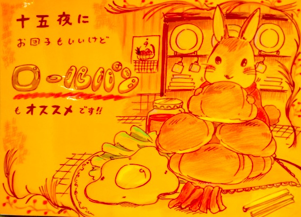 ロールパン 作家:桃の木 2015年09月23日 0 桃ノ木です♪ 今度の十五夜用にこんなポップを描かせて頂きましたー 販促物は何故かロールパンです!十五夜=月とうさぎ= という訳で、メインのロールパンタワーをかじるうさぎさん、ついでに目玉焼きを合わせてお月見ロールパン、という事で! …って、多分誰も十五夜ってわかんないだろうなあ 絵全体のイメージはピーターラピッドです!(更にイメージ遠く…) ラミネーターが常にガタガタいっているのですが… 後飲み込む速度が従来の半分以下なのですが… これは寿命が近そうです(汗) へ[2回]