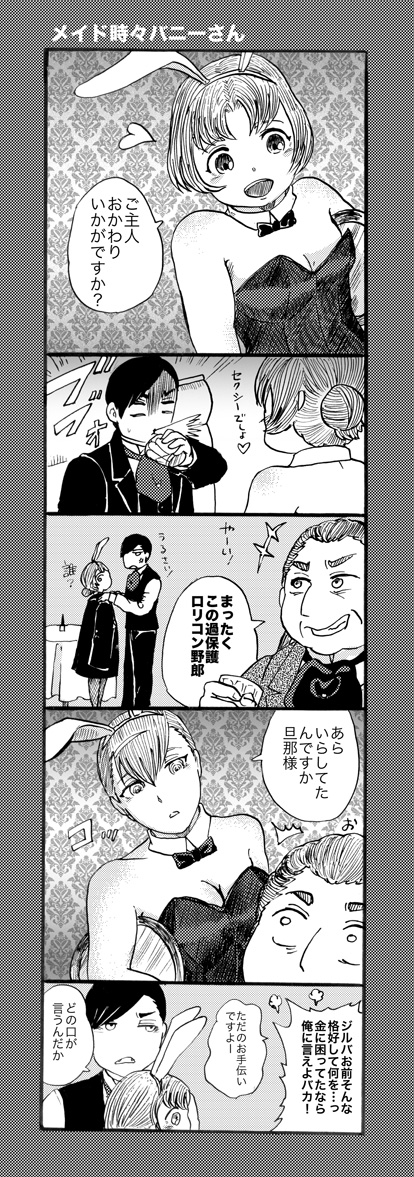 十五夜バニーさん 作家:桃の木 2015年09月27日 0 桃ノ木です!今日は十五夜ですね月も見てきましたが、晴れて輝きとても綺麗でした月…といえば月にはうさぎが住んでいてお団子を作っていると言いますね!と、いうわけでバニーさん描きました〜月=うさぎ+団子=お団子にしたバニーさん!!(超解釈)日本の風習とはうってかわり、何だかアダルティな雰囲気になってしまいました(汗)もしバニーのいるクラブでメイド二人が働いていたら漫画とりあえずポールは何故か普通に生きてます後、今日はららぽーと富士見へ行ってきました!色々あって会社乗り換えでガラゲーからスマホに替えたのですが…手続きめんどい!!先ずは解約に向かったのですが、何やら電話で直接行った方が早いとのこと指定の番号に電話、何やら自動音声で色々と言われた事に0と押して答え、最終的には「受付られませんでした」といったメッセ―ジを聞いても尚0を押し、更に0を三回プッシュすると解約係へ繋がる……って、裏技か!!隠しコマンドかっ!そして込み合いっているらしくなかなか繋がらない!そのまま待つ事15分…ようやく解約係へと電話が繋がりました。そこでじゃあ解約をお願いしますと……え?理由?…まーお値段とか色々…え?プランの見直し?いや、そこらへん込みで色々と事情が…長々と説得が始まりました!いや、早くて続きしておくれよ!もうここに来る時点で心は決まっているんだよ、むしろ面倒だから早くしてくれ!とまあ色々あってようやく解約と相成りましたそれから隣の会社で新規手続きへ…で、書類を書いて書いて二時間!やっと手続きを終える事ができました〜嘘〜、こんなにかかるんかい!本当はケータイショップはオマケで、買い物やらランチやらを楽しむ予定だったのですが、思いのほか時間も体力も消費してしまい、あまりお店は見られませんでした(泣)本当、こういう携帯系の事は苦手です… へ[1回]