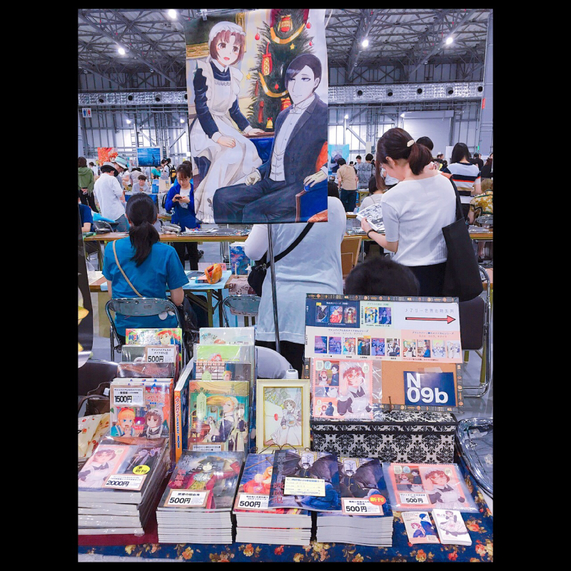 COMITIA129 イベントレポ イベントレポ 2019年08月25日 0 桃ノ木です、COMITIA129お疲れ様でした!お越しくださった方々、ありがとうございました!まず無事に終えられて非常にほっとしています。今年は夏の初めに熱中症で倒れてから、本当に暑さに弱くなってしまってイベントの暑さに耐えられるのかずっと不安だったのでなんとか終えられて安心しました。Twitterの方でも呟きましたが、対策アイテムを大量に導入し食べる物は水系ペットボトル×2本、スポドリ×1本、OS1×2本、めんつゆストレート×1本アイスボックス×1個、ゼリー状OS1×1個、塩タブレット×1袋、おせんべい×1袋これらを保冷剤と共にクーラーボックスに入れ他にも冷却アイテムとして首掛けハンディ扇風機、アイスノン、冷えピタ、濡れると冷たいバンダナ、団扇を装備。服装は普段以上に露出部の多いタンプトップ&短パン、踝靴下という個人的に、これでもか!という装備で臨みました。二週間ぐらい前から半身浴で汗腺を鍛えたし!朝にシャワーを浴びてクールダウンしたし!戦う気十分!なので正直、食品は色々残るだろうなとも。結果、なんとかギリギリ持ちこたえたものの、2時過ぎに離脱し帰宅する頃にはドリンク残、めんつゆのみ。お茶追加1本購入食品残、タブレット一部、おせんべい袋。(差し入れの塩レモンゼリーはありがたく消化)塩分過多すぎない???と思いつつ、命綱のOS1が水だなあ…というレベルになっていたので体内の塩分は確かにどこかに消えたようです(汗)2時過ぎになって、私は上記装備でなんとか耐えつつ体力の限界を感じていた頃売り子さんの方が体調不良になってしまったのでこれはもう駄目だと早めに撤収しました。夏…辛い…ただ買い物に出たりなど歩いている分には風を感じて涼しくそこまで暑さを感じる事はなかったです。スペースでじっとしている方が、どんどん熱が篭っていく感じでした。個人的MVPはハンディ扇風機!!これが本当によかった!幸い風があれば涼しさを感じる気温でしたので頭にがんがん風を送れる扇風機は本当に楽でした。それでも当たらない部位はやはり熱くなってしまうのですが頭を長時間冷やせたので、ぐっと滞在時間が伸ばせたなという印象です。これからまだイベント参加がある方などは是非、ミニ扇風機を! 朝、東京テレポート到着から、サークル入場までしばらく時間があったので近くのバーミヤンで朝食を取りました。本当に塩分はどこへいってしまったのでしょう…。今回も会場の使い勝手はどうですか?という話題をある方とお話しましたが青海展示場はビックサイトのようにホール外で待つ場所がないので来場時間を調節しないと夏場のサークルは辛そうです…。でも不測の事態などもあり得るので、なるべく早めには着きたいのですが。 さて、今回も割と混沌としている机の上。というか巡回を待っている間に撮影したので、うっかり見本誌が変な位置にあります…。今回はヴァンメイ、ブラックバーン家などメイドシリーズは棚に入り新刊含む吸血鬼シリーズを平積みにして推しています。準新作のヴァンメイお屋敷変再録のみ、これも手前に。原画の新作も一枚置きました。在庫状況としてはブラックバーン家のバレンタイン編の手持ちが完売。書店委託からいつ呼び戻そうかな、といった感じ他ヴァンメイ789再録の続き、10巻が残り僅かになりました。再録からあぶれた一冊で、大事な完結編ですが一冊では中途半端なので再録?再販するかは未定です。棚2個がいっぱいになってしまったのでそろそろ古い作品の「紳士の玉子〜」は終売かなあとも考え始めました。机の上に余裕ができるまでお留守番という手もありますが…。新刊の「悪魔と間違えられた吸血鬼」は今回もメロンブックスさんに委託しますのでイベントには参加しなかったけれど気になっているという方はそちらでお求め下されば幸いです。 ありがたい差し入れたち。今回は開始直後に買い物へ出た為にお会いできなかった方は申し訳ありませんでした!この場でお礼申し上げます!本当に度々気にかけていただき感謝しかありません。(この場に無いものは帰宅前に食べてしまいました)そして心のこもったお手紙も本当に嬉しいです!自分のやっている事は間違いではないのだと、そんな気持ちになります。もちろん「趣味で漫画を描く」ということは「間違い」に直結するような悪い事ではないしきっと心の赴くうちは一人でもせっせと描き続けるとは思うのですが度々不安になるし、するとそこに意味なんてものを考え始めるし無駄だとか無駄じゃ無いとか、正直イベントが終わって充実感に満ちている今なら何言ってんだい、楽しくやろうぜ!ぐらいの詮無い問いを時にぐるぐると煮詰め始めるので、そんな時にいただいた言葉は本当に支えになります。なんだかポエミーになってきたので締めますが感想や励ましはとっても嬉しいです!ありがとうございます!次回は11月のコミティア130に申し込み予定です。周りの方も次