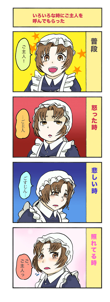 新刊四コマ 作家:桃の木 2015年08月21日 0 桃ノ木です今回は新刊裏表紙のご紹介♪恒例のキャラ立ち絵、今回はキリングのおっさんです〜歴代立ち絵〜キアイラ×2メアリーダグラスと次いで、そろそろトマスさんを出してあげたかったのですが、8巻に彼の登場シーンがあまりにも少なかったので…まあ出番の差でキリングとなりました!影だけに、どこまでも影の薄いトマスさん(涙)次回に彼の見せ場があったら今度こそトマスさんにしたいです…しかしお屋敷編の昨今、出番の多さで決めるとメイド長、カーリー(メイド)、エドワード等のお屋敷編新キャラに座を奪われそうな気がしないでもありません。頑張れトマスさん、レギュラーキャラの座を勝ち取るんだ!!で、実は立ち絵と四コマはいつも別々に作るのですが今回双方を別の機会に塗ってみて、さて裏表紙を作ろうと合体させた所…雰囲気が全然合わない!!!おっさんをやたら凝って塗ってしまった為に、ポップなキアイラ四コマとの相性は最悪となってしまいました。四コマを書き直すという手もありましたが、今回締切に追われていた事もあり手直しを断念。最終的にカラーは没となってしまいました!本当はこんな感じ個人的には怒った表情が一番好きです(笑)というかこれ、そのまんま今回の表紙じゃないか…?こういう◯◯してみた、とか◯◯のいろんな表情とか一時pixivで流行りましたよねー一度描いてみたかったのでした♪ へ[0回]