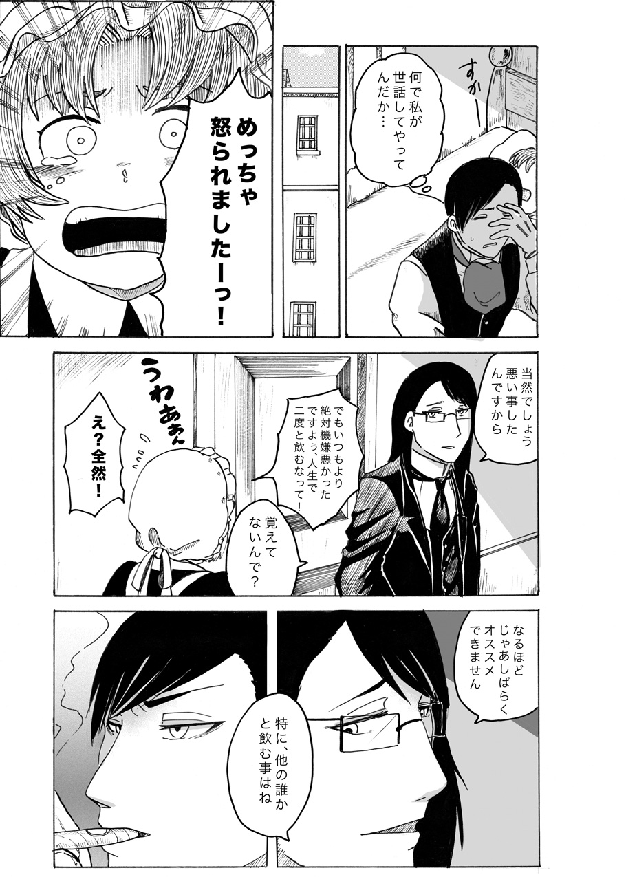 ワインは大人の味がする 作家:桃の木 2015年04月25日 0 桃ノ木です!恒例、イベント前の短編をUPしましたー今回はありがち、お酒ネタです!お酒で赤くなってぽやんとしている女の子っていいよね!まあ実際のところ私は全然お酒は飲まないので、酒の席というのがあまり得意ではないのですが。宴会とか出てもね、もぐもぐ食べてるだけだったり……枝豆おいしいなーとか、唐揚げ味薄いなーとか後、お酒を飲むと気持ち悪くなるって事あるじゃないですか。現にうちのいとこは二人が二人、親戚の集まりの席でリバースしてました(…血筋的に飲んだらきっと私も…ガタブル)元々、上から戻すというのが本当に駄目なんですよー、生理的に勘弁してって感じで。胃が悪いので他の理由で気持ち悪くなる事も日常生活多々あるのですが、お願いだから上から出ようなんて考えないでくれーってなります。そんなわけでお酒はねえ……弱いもんで嘔吐の危険が怖いんですよねーいや、漫画はあくまでファンタジーですから、そんな汚い話は忘れましょう! へ[1回]