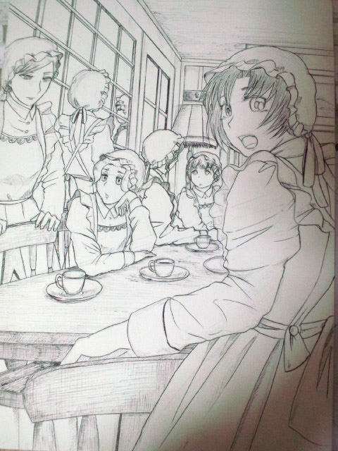 新刊表紙 作家:桃の木 2015年04月07日 0 ※4月7日、拍手返信追記こんにちは、桃ノ木です!暖かくなったり寒くなったり、不安定なお天気が続いてますねー前回、コミティアのスペースが取れたというお知らせをしましたが今も絶賛、新刊作業中です。で、やっとこ表紙もできたのでお披露目します!今回は、お屋敷編の開幕ということでメイドさんがいっぱい的な表紙です。制服も一新、肩フリルの豪華なエプロンになりましたー本来、メイドのエプロンやドレスは就職前に各自用意するものな為、流行にも左右されますが個人個人違うデザインの服になる筈なのですが……全員地味に違うデザインだったら、絶対混乱する!という…駄目な理由で制服支給制にしてます、はい。それにできれば豪華なデザインにしたかったしね、経済事情によっては凄くシンプルなエプロンになる子もいるだろうし。まあ勤続年数の長いメイド達は、毎年支給される布を使って制服を縫うので、同じような衣装に統一されていくかも知れませんが。表紙に乗っている午後用エプロンも変わったのですが、AMの掃除用制服も一新しているので本編で注目していただけたら嬉しいです。以下、拍手返信 つづきはこちら へ[0回]