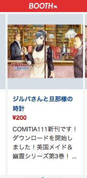 COMITIA111のお知らせ お知らせ 2015年02月01日 0 (この記事は2月1日までトップにあります)桃ノ木です!COMITIA111の参加情報のお知らせです!【メアリー/せ04a】ジルバさんと旦那様の時計 by 桃ノ木@ティアせ04a on pixivA5/40P/300円予定ジルバさんシリーズ第3段!幽霊の旦那様がジルバに懐中時計をあげる約束をするお話。しかしある筈の倉庫の遺品からは、なかなか時計が見つからない。やっと見つけたのはパーツがなくなり壊れた別の時計、これは何?という問いに、旦那様はその壊れた時計と、探す時計にまつわる昔話を語り始める。と、そんなわけで前々からもなんとなーく言っていましたが過去の旦那様の登場です!ハゲてないし、太ってもない!そんな旦那様のビフォーアフターをお楽しみください(笑)当日はスタートから12時頃まではスペースで待機していようと思っています。(前回、差し入れ等いただいたのに不在で申し訳ありませんでした!)御用の方は……(当方チキンですが)お声がけいただけたら嬉しいです!※24日追記ーーーお品書きができたのでUPします!COMITIA111 お品書き by 桃ノ木@ティアせ04a on pixivフォーマットは前回の使い回しですが。ヴァンメイ、1巻と3巻の在庫が少なくなっています、ご興味のある方はお早めに起こし下ればと思います。後はペーパーを作らなきゃ!にほんブログ村 漫画ブログ へ[1回]