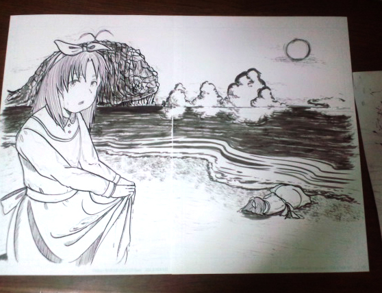 不思議の国の〜 作家:桃の木 2013年09月20日 0 桃ノ木です。最近めっきり更新してませんでした・・・体調がどことなく良くないです。秋バテという奴でしょうか、はっきりしない天気で辛いです。風邪で寝る→原稿→仕事→寝る のサイクルだったので別段特に何事もないんですが、せっかくなので最近描いてる漫画を貼っておきます。次回十月のコミティアでは載せないのですが発行予定の漫画の続きで、アリスパロネタを描いてます。パロという程パロになりませんが、チェシャとか女王様とか出る不思議の国です。でも不思議の国の不思議感って難しいですねー、奇を衒わないとヘンテコな世界にはならないし、かといって私の奇では世界の法則が成り立っていないような絵になりそうだし…ってことで割と普通な世界になってます。海も出ます。こう、変な不気味さが滲むような絵が描きたいです。 へ[0回]