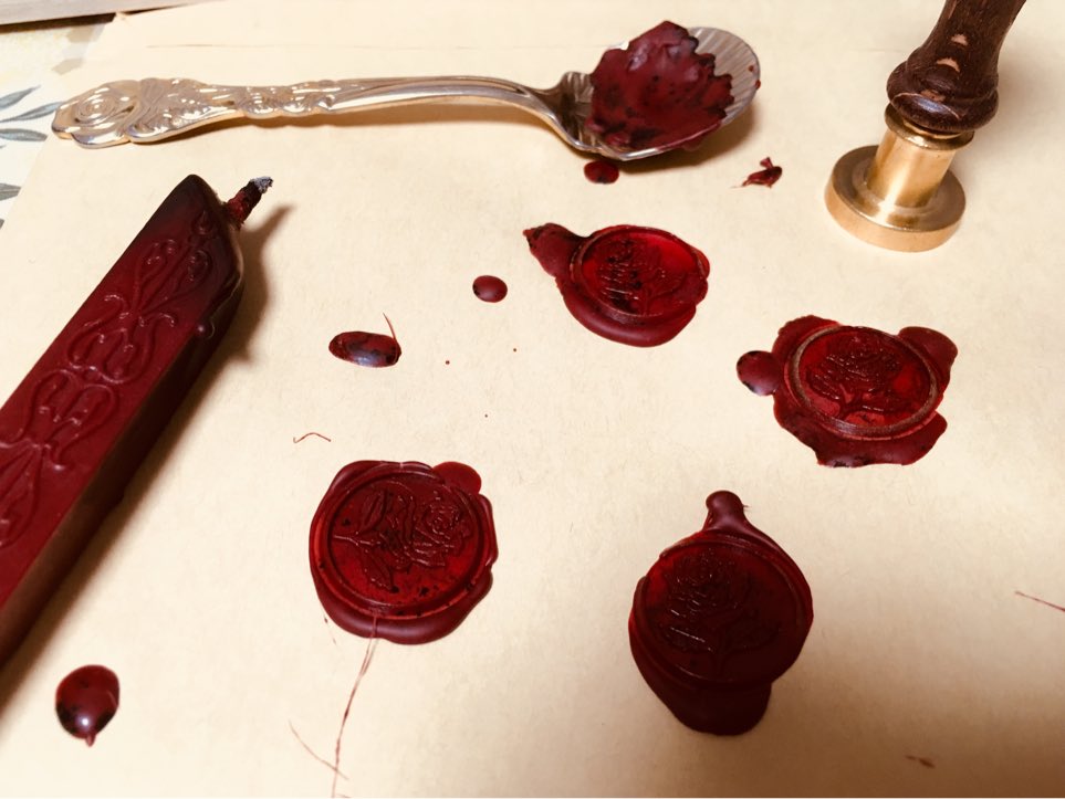初めてのシーリングスタンプ 作家:桃の木 2018年07月07日 0 桃ノ木です、本日の更新は吉祥寺へ行った話です。七月は原稿の都合もあって、あまりどこかへ行けないだろうなーと思っているので行ける時はエンジョイしたいなと思っています。まずは錆猫ギャラリーで開催中のかとうゆずさんの個展「やまといろは」を拝見してきました!この方の絵を拝見するのは実は数年ぶりだったのですがやっぱりレベルアップしていて凄いなーと。DMにもなっている猫ちゃんの絵の原画がとても素敵でした!開催は月曜日までのようなので、猫ちゃん好きの方はぜひ! で、今回は買い物をするという目的もありまして猫錆ギャラリーのある中道通りをさらにまっすぐ進んだ先にある輸入雑貨店ジョヴァンニさんへ行きました!目的はシーリングスタンプです!!昔からやってみたいなーと思っていたのですが、手紙を書く機会なんてそうそう…。と諦めムードで、いつの間にか忘れてしまい(そもそも字が汚いので直筆に抵抗が…)最近、しっかりした(?)お手紙をいただく機会があったのとTwitterの知り合いの方が購入していたのを羨ましく思ったのもあって買ってきました!!!上の写真は試しに遊んでみて、しっちゃかめっちゃかになっている紙の様子模様はわかりにくいですが薔薇です。…あんまり桃ノ木イメージじゃないのかな?上手く丸くロウを落とすのが難しいです。でもこれでかっこいい封印をするぞ!ジョヴァンニさんはシーリング系の商品の他にもレターセットとかゴムスタンプ(?)など見ているだけで楽しくなる雑貨がたくさんあるお店でした。お隣には可愛いイギリス雑貨のお店があり、そちらでのお買い物も楽しかったです! お土産にグラニースミスのアップスパイを買いました!この可愛い紙袋…好き!食べたのはイングランドカスタード。甘さ控えめの優しいお味でリピートしたくなりました。色々支店もあるようなので、どこかでお見かけの際はオススメします!最後に、今週もヴァンメイ更新しました!http://seiga.nicovideo.jp/watch/mg329836?ref=nicoms3Pの吹き出しなし漫画です、昔の挑戦作でした へ[1回]