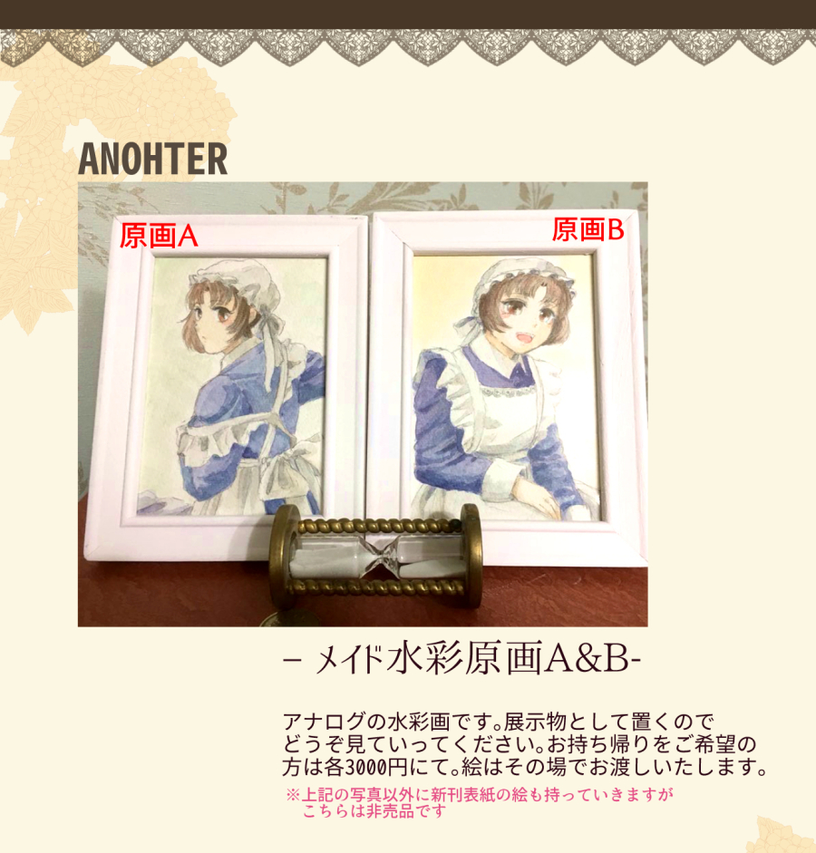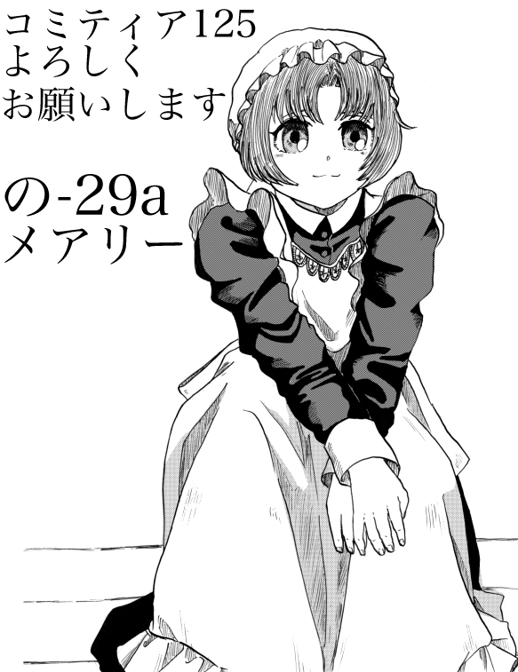 COMITIA125 参加情報 お知らせ 2018年08月11日 0 桃ノ木です、今週はコミケで賑わっておりますねそして来週はいよいよ夏のコミティアです!8月19日東京ビックサイト開催COMITIA125に参加します!【メアリー/の29a】吸血鬼と永遠を請う高級娼婦 A5/64P/500円ーーーーーー16世紀ベネツィア、高級娼婦を生業とするソーレは何やら裏のある観光客と出会う。上手く騙して金を奪ってやろうとするも、逆に出し抜かれて失敗。そんな男に惹かれつつ身辺に探りを入れると、怪しげな不老不死の研究をしているという。更に情報屋によれば男は吸血鬼のようだとも。衰えれば明日のない仕事、美しさを手放したくないソーレは、男の元へ交渉へ向かう。https://www.pixiv.net/member_illust.php?mode=medium&illust_id=70000898pixivに長いサンプルを掲載しているのでどうぞ!初めての近世ということで、いつにも増して頭を使って描いたつもりです。吸血鬼シリーズの「禁書の吸血鬼」以前の話となりますめっちゃ頑張ったので、ぜひ見ていただきたいです通販は今回早めに動いていてすでにメロンブックスさんの方で予約が開始されました!なんと書店限定特典のカードもお付けしますhttps://www.melonbooks.co.jp/circle/index.php?circle_id=34274こちらは会場では配布しない限定イラストですのでコミケ疲れて来週は…という方は今回通販もお得です!そして125のお品書き。 新刊は娼婦のお姉さんの話なのでメイド要素の補填のために、机に置ききれず終売していた「ジルバさんと旦那様の未練」を一時復活させました!古い漫画ともあり再配布は今回のみのつもりですブラックバーン家のメイドシリーズより前に描いた日常メイドもので幽霊の旦那様とメイドさんのお話となります。 ヴァンパイアんちのメイドさんシリーズの再録本とブラックバーン家の2冊も持っていきます!再録は今ニコニコ静画で連載中のお話の先のお話ですhttp://seiga.nicovideo.jp/manga/list?user_id=5641579公開はしばらく3巻分まで(後2話)の予定なので早くその先が知りたい方はどうぞ! そしてメイド要素の補填その2初の水彩画も展示&販売をします!お値段は需要があるかわかりませんが、一応つけました。おうちに飾りたいという方がいたらお迎えしてあげてくださいー!ブログはしばらく止まっており、一週間前の更新となってしまい申し訳ないです。来週はぜひ遊びにきていただけたら嬉しいです へ[1回]