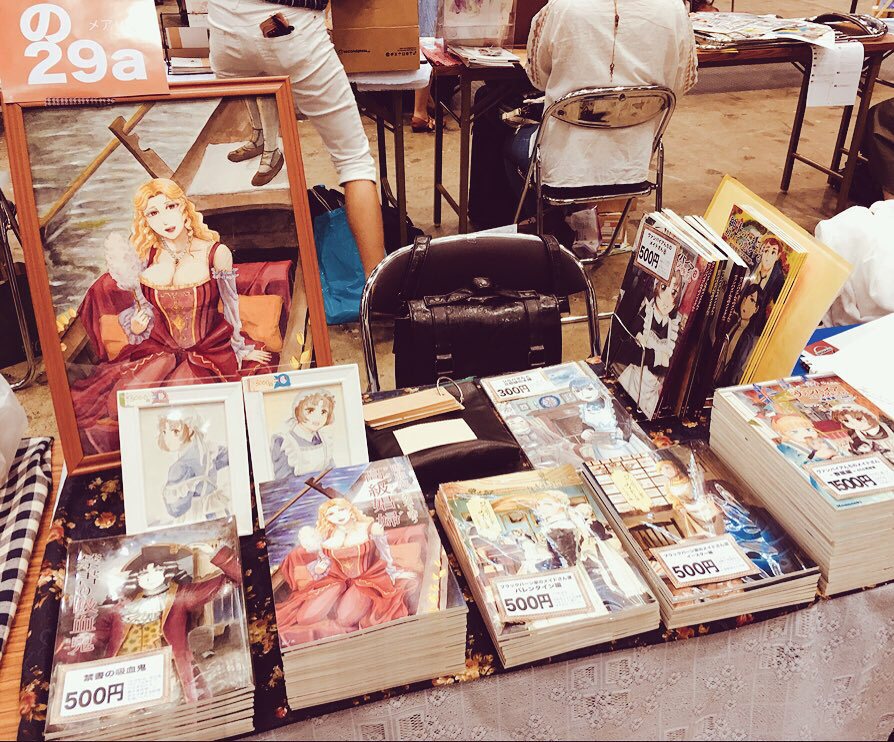 イベントお疲れ様でした! イベントレポ 2018年08月20日 0 桃ノ木です、昨日はコミティア125の開催日でした。お越し下さった方々やTwitter等で宣伝にご協力いただいた方々、本当にありがとうございました!まずはサークルスペース、今回はこんな感じになりました!新刊にまだ値札を付けてませんね、あとでちゃんと付いたのでご安心を!真新しい所といえば、新刊とその表紙の原画を持って行きました。いつものクリスマスタペストリーとは違い、割と夏っぽくなったのではないでしょうか。写真ではわかりにくいのですが、配送の荷物と一緒に入れてあったので表面のプラ板(ガラスではない)にヒビが入ってしまいました!そこらへん見苦しい感じになってしまい申し訳なかったですヤマト受付の方に「Amazonの箱は弱いのよー大丈夫かしら…」とご指摘を受けたのですがなんとかなるだろーとそのまま送ってしまったのがよくなかったようです!ちなみに一律Amazonの箱が、というより底が折りたたみ?みたいになっている物が特に強度が弱く、私のように物をぎゅうぎゅう詰めにして送るのに向いてないということのようです……つまり自業自得!!!底も案の定潰れてしまっていたので、帰りはしっかりしたヤマトさんのダンボールを買いました!後はミニ原画ですね!初めて水彩での原画をお持ちしました、これがあることでグッとメイドさんサークルっぽくなっていますね!一応お値段はつけておいたのですが、お迎えはされなかったので次回も展示できるかなと思っています!新刊はいつもとは全然違う、メイド要素も薄い娼婦と吸血鬼のお話だったのですがたくさんの方にお手にとっていただけて良かったです!果たして面白かったのか…どきどきです。新刊はイベント終了したので、メロンブックスさんで通常通販が始まりました!もしまとめ買いの予定などありましたら、どうぞよろしくお願いしますhttps://www.melonbooks.co.jp/circle/index.php?circle_id=34274そして限定復活させたジルバさん本も、無事手持ちがなくなりました!!……こちら実はこっそりCOMIC ZIN書店のウェブ通販に残っているのですが、返本されてももうイベントには持っていかないと思います。もし興味のある方がいましたら、こちらからhttps://shop.comiczin.jp/products/list.php?category_id=6430秋はまたスペースが狭い問題に直面しそうです! 朝は比較的涼しい陽気となりましたが、会場内は暑かったですね!でもきっとコミケよりはずっと過ごしやすい場だったろうなと思っています。朝からちょっと調子が悪く、もしや早めに撤収か…と思ったタイミングもありましたが最後までいられて良かったです。ビックサイトではコミティアの他、鉄道模型博のようなイベントが行われたようです。ちらっと見ただけなので名称が違ったらすみません!設営時の際にいつも椅子の上にあるチラシには、今回はうちわがありました!私うっかり横に置いて使うのは忘れてしまったのですが、使ってる方をちらほら見かけました。開場後の人入りは始終安定した雰囲気でした。開場直ぐわーっとなって午後はまだらに…というパターンもありますが、今回はあまり波を感じませんでしたね。少ない訳でもない。コミケの翌週と考えると、とても多くの方がいらしているなという印象にもなります。私はいつも通り2時ごろに買い物へ出たのですが、Twitterの方でもちらほら完売の文字を見かけ、逃してしまったものもありました。今回は買い物は控えめに、秋は売り子さんをお願いしよう、という心持ちでありましたので、次回は!次回は満足いく買い物をするぞ!と心を励ましました。撤収時には、ヤマト運輸の列でとっさに荷物を持ち上げられず困っていた所を助けて下さったお姉さん、本当にありがとうございました! そして、たくさんの差し入れありがとうございます!!原稿のお供にして、エネルギーにします可愛いイラストも色々いただき、とても嬉しいです!絵を描くって凄く大変ですからね…しかも他人のキャラって愛がないと描けませんよー!めっちゃ嬉しいです! そんな感じで、夏のコミティアイベント感想でした!(レポというにはあまり内容がない)相変わらず体が筋肉痛でバキバキなので、少し休んでまた秋の計画を立てたいと思います! へ[1回]