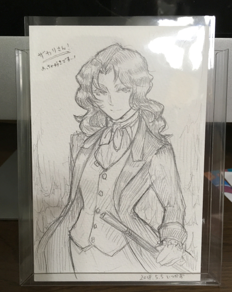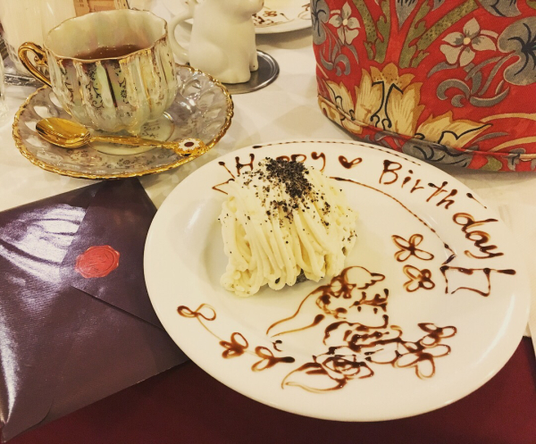 ワンダーパーラーのお誕生日特典を試してみました! イベントレポ 2018年05月19日 0 桃ノ木です!今日はなんと池袋にあるメイド喫茶「ワンダーパーラー」さんへいってきました!http://wonder-parlour.com/index.htmlワンダーパーラーさんは制服と接客と紅茶が素晴らしいメイド喫茶さん。予約制のお店で、飛び込みでも断られる事はありませんが、お席が埋まっている事が多いので予約しておいた方が無難です。 訪問は2回目で、今回はなんとお誕生日月ということで予約の際にお誕生日特典をつけちゃいました!するとどんな事が起こるのか…??というのを今日はお話したいと思います。 特典1:ウェルカムドリンクなんとお誕生日月だとサービスで、ドリンク一杯がついてきます!選べるのはワインかオレンジジュース。お得なのが誕生日の人のみならず同行者もサービスを受けられるのです、嬉しいですね//今回、注文したのはフードセット。お料理+お茶+デザートのセットです。まずお料理はカポナータを選びました。揚げナスとトマトソースのパスタですこれが…めっちゃ美味しい!!!トマト系料理が好きというのもありますが、ソースがすごく良かったです!ナスも揚げてあるので、香ばしさプラスであっという間に食べてしまいました。次回も食べたいです。 しばらくして、紅茶とケーキの登場。紅茶は本日のメイドティー「トロワ・ノワ」です…名前間違っていたらすみません。アーモンドなどナッツ系の風味がある紅茶だそうでしたが私は杏仁の香りに感じられました。普段はストレートかミルクで飲む事が多いのですがこれはちょっと甘くしても良かったかなとはちみつやお砂糖をお断りした事を少し後悔。でもとっても美味しかったです!カップも虹色に輝くような光沢を持つ食器で、しかもティーカップなのに足つきという珍しいものでした!ケーキはごまと豆乳のモンブランゴマベースの生地の上に、豆乳仕立てのふわっふわなクリームがたくさん乗ったケーキでした。そして特典2:プレート!こんなに可愛いお祝いの絵を描いていただきましたよ!なんだかもうこれだけで嬉しいですねー!!そしてこの手前にある封筒が特典3:メイドさん直筆バースデーカード! カードはこんな感じ封筒とカードのメッセージ部分には本名が書かれているので外だけお見せしますね!結構分厚い感じ。カードはノーマルと「ちょっと豪華に」という二種類あるようなのですが、私は豪華な方を選んでみました。豪華版の特典は………これは言っていいのかな?HPもぼかして記載しているし…とりあえず、右上の「プッシュ」というのにご注目ください押すと仕掛けが起動します!お誕生日やクリスマスカードにあるあるな機能ですねお察しいただけたでしょうか?カードを渡していただく際に、メイドさんからもお祝いの言葉をいただけます!(特典4)照れますね// 素敵な1日をお過ごしください、などなど!…でも実は誕生日今日ではないんだ、ごめんね、と内心思ったりしました。できたら当日に来たいですね! あと、せっかくメイドさんが間近で見られる機会なんだから!と今回はメモと筆記用具を持参してみました。食後はいそいそとメイドさんクロッキー。誰が誰とこだわらずに似たポーズをしてくださった際に書き進めるという事をしたので、若干制服が混ざっているのもあったり。瞬間的に記憶して描く、というのが全然できず難しかったです。正面は、正面のメイドさんをガン見したら、呼んだと思われたのかお水を持って来てくださったのであ、いや、すみません…!!!となって、流石に描くのをやめました(大迷惑)一番上の絵は帰宅後に、今日を記念して描いたイラストです。背景は店内の写真を使いました。この絵を見るたびにワンダーパーラーさんでの楽しい体験を思い出すぞー!そんな感じで、誕生日月のワンダーパーラーさんでした。ジュースやカードもつきますし、メイドさんにもお祝いしてもらえるのでぜひぜひ、メイド好きの方はお誕生日のお祝いにワンダーパーラーさんへどうぞー!!…って、まとめ終わった感じでしたが、一応お知らせも。ニコニコ静画で連載中の「ヴァンパイアんちのメイドさん」今週も更新しておりますどうぞよろしくお願いしますー!今回はキアイラがひどい目に合う回http://seiga.nicovideo.jp/comic/14816?track=verticalwatch_cminfo3 へ[2回]