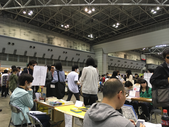 COMITIA124 イベントレポ イベントレポ 2018年05月06日 0 桃ノ木です!コミティア124お疲れ様でしたー!お越しくださった方、twitterの方で宣伝協力していただいた方々ありがとうございます!今回は五月にしてはとっても暑いイベントでしたね。シャッター側は開放されていたので、風が入って涼しかったそうです。私のところはやっぱり結構体力にきました、このままでは夏はどうなってしまうのか…。 今回は体感的にかなり人の多いイベントでした!(思い出した頃に撮影したので、写真ではピーク過ぎちゃってます)近くの通路もすごい行列ができていました。あれはどこに繋がっているのだろう…と考えたり。ありがたいことに、私のスペースにもいつもの倍くらいの方にいらしていただき1時過ぎる頃には机はほとんど空っぽに…。上のが設営時の写真で、ブラックバーンシリーズ以外は結構少なめに持っていったのが仇となりました。家にはもっとたくさんあるのですよー!!特に再録!持ち込み分は新刊を除きほぼ完売でした!本当にありがとうございます!今回で・ブラックバーン家のメイドさん達(無印)・ヴァンパイアんちのメイドさん達7巻の二種が晴れて完売となりました!机が逼迫していたので、ディスプレイ的に完売はめっちゃありがたいなーと思ってます(笑)こんなワイワイした机も昨日の後半は、新刊のみで勝負!みたいな事になっていたので、改めて驚きです。 今回も一人だったので、桃ノ木写真はないです。当日のお洋服はこんな感じでしたちなみに買い出しは、イベント数日前に他のスペースで売り子さんをやる予定のお友達が、急遽私のお買い物時間にヘルプして下さる事になったので、それに甘えて30分程抜けてきました!今回は3ホールと広い上に人も多く、時間に間に合うようにとせっせと頑張りましたがなかなか限界を感じました。満遍なくの上、新規開拓を望むならやはり二人以上が必要だなあと思ったり。お洋服は数日前にやっと届いた品で、色々な方にお褒めいただきとても嬉しかったです。なんとお返ししていいかわからず、うふふ…みたいなよくわからない感じなってしまいましたが、こちらはSincerelyさん(http://sincerely.babyblue.jp/)のお洋服で、デザフェスやお洋服系のイベント等で試着や受注会をされているので、気になった方は是非オーダーを!デザフェスレポでも書いたのですが、本当に誰が着ても素敵なシルエットのお洋服でイベントではボックスから人が出てくる度に試着に並ぶ列から「似合ってる」「素敵!」みたいな歓声が上がるような事態になっておりました。「これで貴方もヴィクトリアンレディ!」みたいな魔法のお洋服だと思っております。イベント後は打ち上げにお呼ばれしていたのもあって、ヤマト運輸の列に並ぶのは避けたかったので、2時過ぎのほぼ新刊以外なくなった時点で、軽い片付けを始めました。新刊数冊を机の上に残して後は送ってしまったのですが、この後も思ったよりお求めいただけて3時には何もない机に…。ここでも、もう少し残しておけば、と後悔しましたがもうどうしようもないので、早めに本格的な撤収作業を始めました。後半にいらして下さった方には、ほぼ壊滅しているスペースをお見せしてしまい申し訳なかったです。 打ち上げは、せっかく人混みから開放されたにも関わらずまた人混みへ!松戸さん主催で原宿のカワイイモンスターカフェへ行ってきました!一人では見つけられないし、勇気を出して行かないだろうなーという場所にここぞとばかりに便乗して遊びに行きます!この遊園地みたいな席が店内です。※回りません雰囲気としては、きゃりーぱみゅぱみゅの世界みたいな感じ。 モンスターガール達によるショーもあり一緒にちわわダンスのフリを覚えて踊りました。こういう時は羞恥心など捨てるんじゃー!(…と言いつつ桃ノ木は一番奥の席にいたので、別に誰にも見られない) レインボーパスタ……食べ物です。輪ゴムじゃないのです。かなり勇気のいる外見ですが、味はちゃんとパスタでした、よかった! カラフルポイズンケーキ……名前が既にやばい!あ、でも美味しいです。ちなみに私の誕生日が近かった事もあり皆さんからハッピーバースデーの歌を贈っていただきました!食事の後にスケブ会をやったり、たくさんお話させていただいてとても楽しかったです!ただ体力ケージはほぼゼロに近かった…!疲れた!でも行けて良かったです! イベントではたくさんの差し入れありがとうございました!一部持ち帰り途中に割れてしまった物もあり、本当にすみません!原稿の英気を養うために美味しくいただきますね そして、絵の頂き物もここで紹介させていただきます!seleさんから、以前描いていただいたカミラさんのカードとザカリの原画を!!なんということでしょう…お美しいですザカリさん//こんな素敵な絵をいただけるなんて幸せ者すぎます//本当にありがとうございます…!と、良い物拝ませていただいたわーと開封を続けると… な、なん
