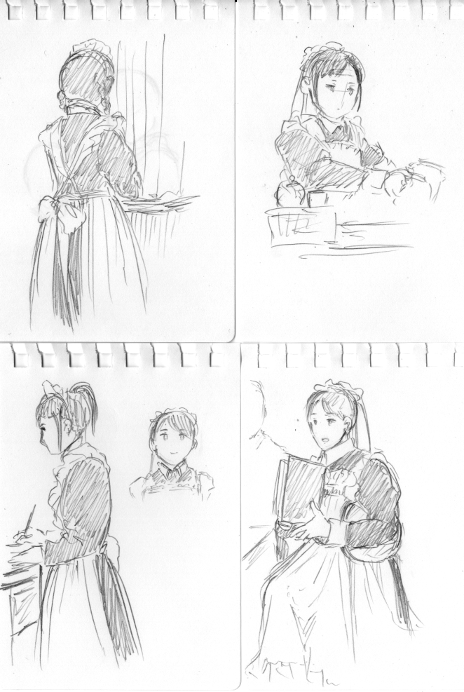 COMITIA124参加決定 お知らせ 2018年04月08日 0 桃ノ木です!前回は抜歯のお話をしましたが、もうすっかり忘れてしまうぐらいよくなりました!ただ歯医者通いはまだ続いておりますが、そろそろ終わるかなーそして、またそろそろコミティアのシーズンがやってきました!五月五日(土祝)東京ビックサイト開催COMITIA124に参加します【メアリー/そ33a】新刊はブラックバーン家のメイドさん達・イースター編予定!更に進展するカミラの恋と、相変わらずいちゃいちゃしているダグキアの話です個人的に特出すべき事柄があるとすれば、マザリングデーで実家に帰省するカミラの、妹のデザインがとても気に入っている事とご主人が久しぶりに脱いだ、といったことでしょうか。カミラ妹は、ちょっと古めの髪型をしている眼鏡の女性で彼女を巨乳設定にしたら、釣られてカミラさんもバストアップしていました。描くのがとても楽しかったです。ご主人が脱ぐのは、ついにダグキアいかがわしいことに…!とかではなく普通に着替えのシーンなのですが、この人の筋肉を意識して描いたのは3巻以来ではなかったか、と懐かしく思いました。筋肉とかわからないから脱いで欲しくないなーという思いとベタが楽だからシャツは着ない方が良いのではないか、という思いに挟まれていました。普段、筋肉を維持されている方からすると家に引きこもってばかりのもやし生活なのに、何でムキムキやねん!って思われそうですが、吸血鬼化すると筋肉の付き方とかの体形が理想的な姿になるみたいな阿良々木君方式かもしれませんあるいは吸血鬼化の時点では、割と活発な青年だったのか。何にせよ「そのまま維持できる」って最強だなと思いますそんな感じで、イースター編を描いております。印刷所の締め切りがGW仕様でやや早そうなので完成まで頑張りたいと思います! http://seiga.nicovideo.jp/comic/14816?track=verticalwatch_cminfo1後、いつも通り今週もニコニコ静画の方更新しております今回はイラスト回、あまり公開したことがないであろう昔のイラストをまとめてみました。漫画は、第2話まで最後まで読めるようになっておりますこの機会に一気見していただけたら嬉しいです! へ[0回]